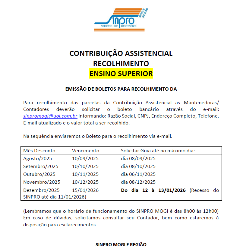 COMUNICADO PARA AS ESCOLAS/MANTENEDORES E CONTADORES