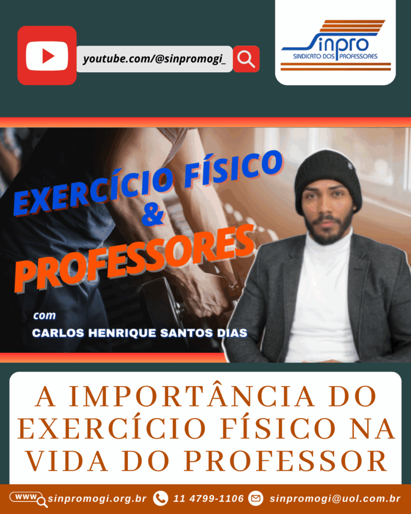 O professor Carlos Henrique Santos Dias foi o convidado desta semana no programa TV Sinpro. Ele falou sobre educação física, a importância do exercício para a saúde cognitiva e como o corpo docente também serve de exemplo para os alunos quando o assunto é cuidado com a saúde física.