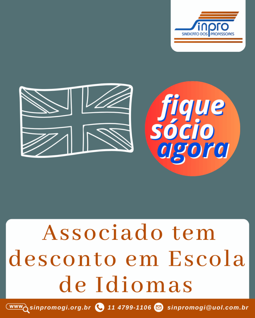 Dentre as vantagens listadas estão escolas de idiomas que possuem descontos na tabela para sócios do Sindicato dos Professores de Mogi das Cruzes e Região. Professor, fique sócio.