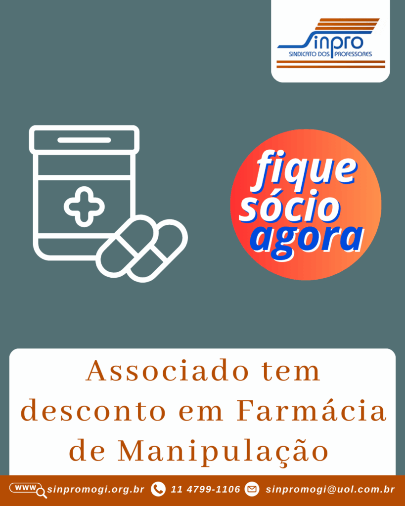 Dentre os estabelecimentos que oferecem vantagens está a Bella Fórmula Farmácia e Manipulação, onde os professores associados possuem até 20% de desconto.